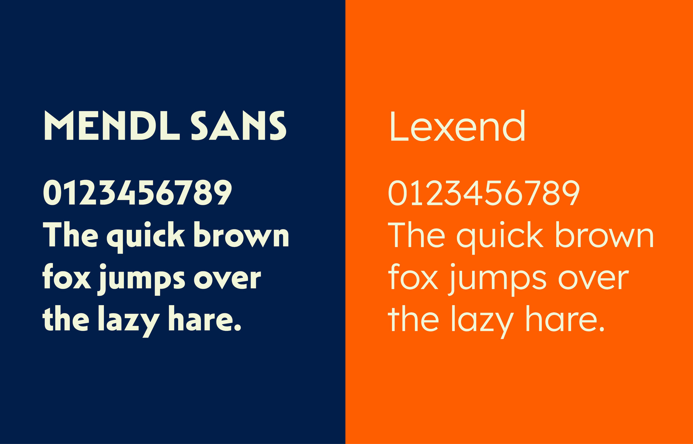Mendl Sans Dusk Bold is used as the primary font and is to be used for headers and titles. Lexend Light is used for secondary text or body text.